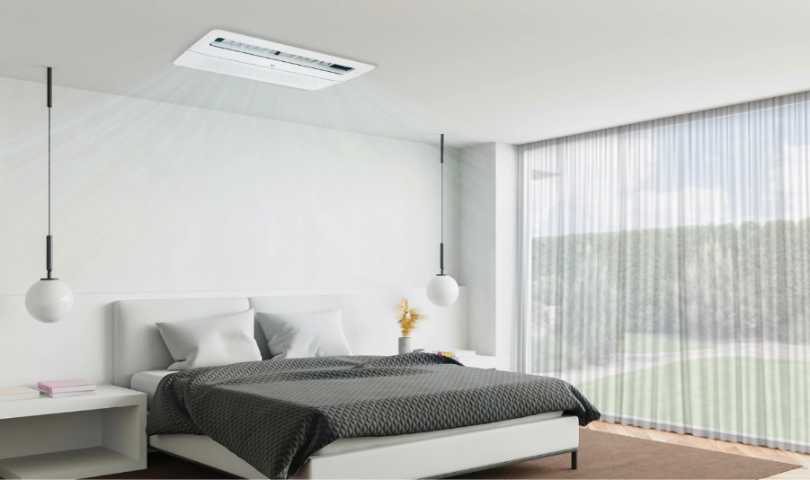 Para as unidades internas, a LG oferece uma paleta de evaporadoras que se adaptam a qualquer conceito de design. O Cassete 1 Via, com seus 13,2 cm de altura, é a solução definitiva para projetos minimalistas, permitindo uma integração quase invisível em forros rebaixados. Além de um design versátil e compacto, ele se adequa a qualquer ambiente e aproveitando melhor as paredes para arquitetos e design de interiores criarem o melhor projeto aos seus clientes.
