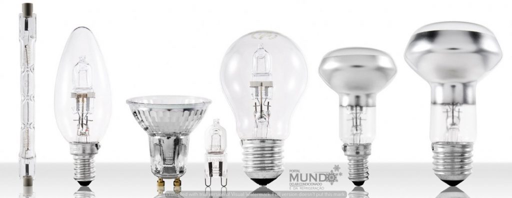 3. LÂMPADA de HALOGÊNIO – São bastante parecidas com as lâmpadas incandescentes, mas possuem material halógeno em sua composição. Isto torna as lâmpadas mais eficientes que as lâmpadas incandescentes, com um fluxo constante durante sua vida, que gira em torno de 2000 a 4000