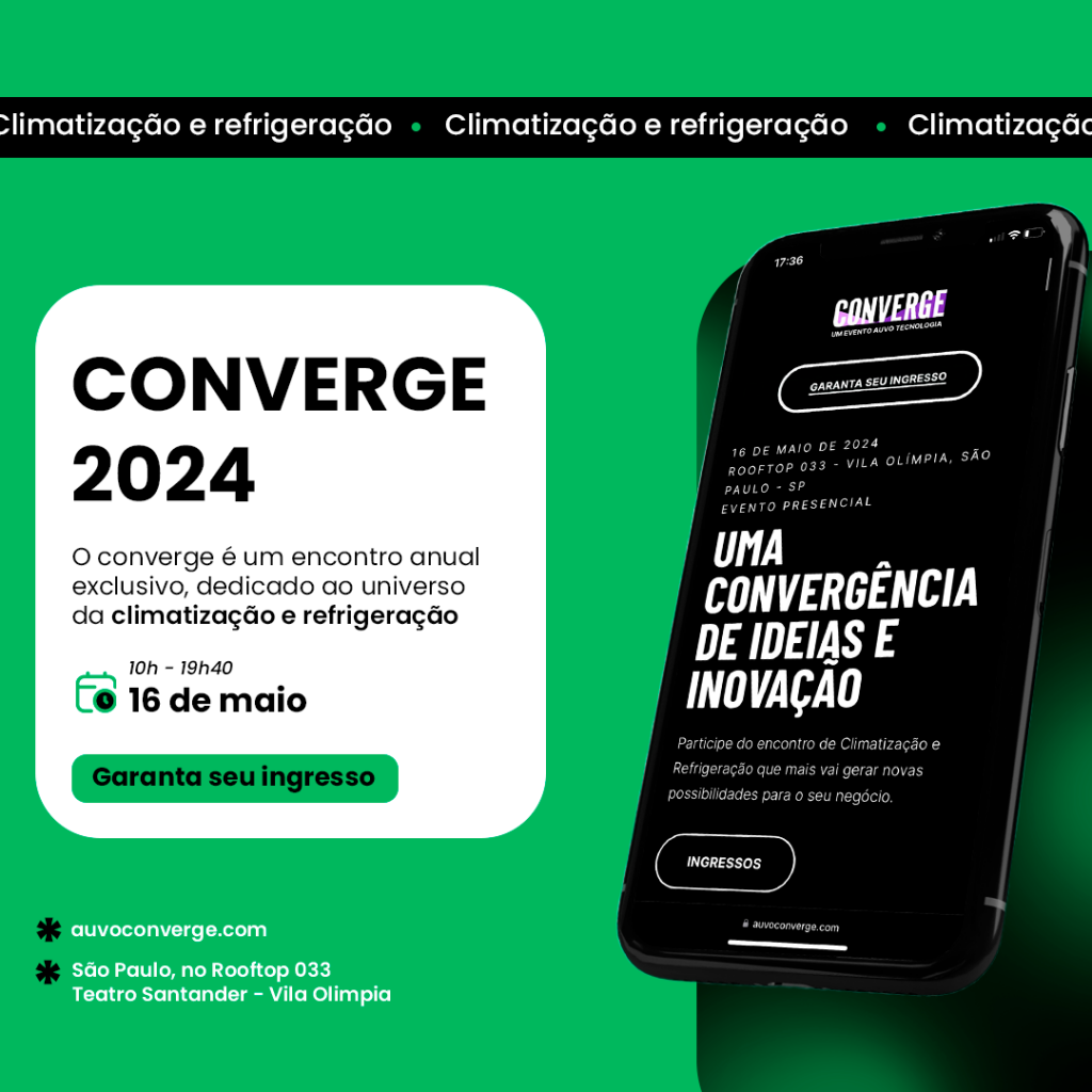 O próximo dia 16 de maio marcará uma nova etapa na área de refrigeração e climatização (HVAC), que é quando acontece o Auvo Converge, evento realizado pela Auvo Tecnologia, plataforma completa para gestão de equipes externas. O Converge é um encontro anual exclusivo, dedicado ao universo da Climatização e Refrigeração. Este evento presencial reúne os líderes, especialistas e profissionais de destaque no setor, em São Paulo, para uma imersão única. Trata-se de uma série de palestras com conteúdo de primeira proferida por um elenco renomado: Gabriel Pardo, Felipe Zanata e Eduardo Prado, entre outros. O Auvo Converge será reaizado nesta quinta-feira, dia 16, no Rooftop 033, na Vila Olímpia, em São Paulo, e promete ser uma experiência enriquecedora para todos os participantes, uma vez que o Auvo Converge contará com uma variedade de palestras e rodas de conversa, cada uma abordando temas de importância para se dar bem neste setor. Confira abaixo a programação do evento e a grade de palestras: