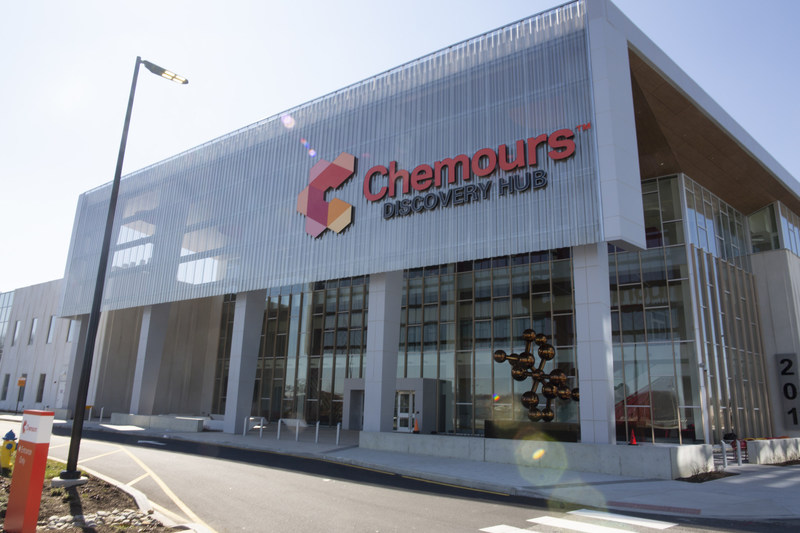 O Chemours Discovery Hub, instalado no campus de Ciência, Tecnologia e Pesquisa Avançada da Universidad de Delaware, possui cerca de 30 mil m² e abriga mais de 300 pesquisadores e cientistas.