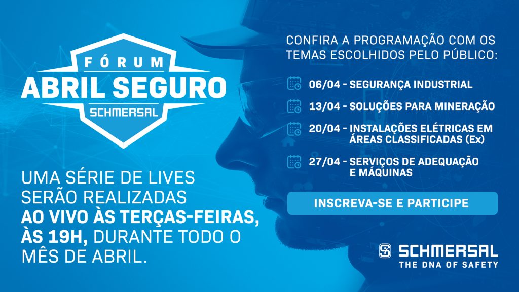 A Schmersal promove o fórum “Abril Seguro”, uma série de lives que serão realizadas às terças-feiras, às 19h, durante todo o mês de abril, no LinkedIn da companhia. Os especialistas da Schmersal vão esclarecer as dúvidas e compartilhar conhecimentos sobre cada uma das áreas definidas na programação. Em 6 de abril, a live será sobre Segurança Industrial, abordando questões como as principais normas e recomendações de segurança para adequação de máquinas e prevenção de acidentes e como aplicar corretamente os dispositivos de segurança, por exemplo. Amauri Martins, especialista de segurança em máquinas e equipamentos; Christian Borba Müller, gerente do núcleo de automação e segurança; e Jamile Zarif, coordenadora de produtos de segurança, vão falar desses e outros temas. Em 13 de abril, a live abordará as Soluções para Mineração e será conduzida por Luciano Perry, especialista em mineração; e Raphael Diniz, coordenador de produtos – indústria pesada e Ex. Neste encontro digital, os especialistas abordarão assuntos como impactos nos custos com correias paradas e como garantir a operação continua em sistemas de transporte. Em 20 de abril é a vez de Ricardo Zanata, especialista em produtos Ex e atmosferas explosivas; e Raphael Diniz, coordenador de produtos – indústria pesada e Ex, falarem sobre Instalações Elétricas em Áreas Classificadas (Ex). As principais exigências normativas para atmosferas explosivas e como realizar um serviço de inspeção em áreas classificadas são alguns dos enfoques desta live. Encerrando o Fórum Abril Seguro, em 27 de abril acontece a live Serviços de Adequação em Máquinas. Dúvidas como quais as tecnologias disponíveis para adequação de máquinas e como realizar uma análise de risco serão esclarecidas por Amauri Martins, especialista de segurança em máquinas e equipamentos; Itamara Diniz, supervisora de projetos; e pelos consultores técnicos Leandro Ducioni e Ricardo de Oliveira. Para garantir a participação gratuita, basta acessar o site https://conteudo.schmersal.com.br/abril-seguro e se inscrever nas datas de interesse.