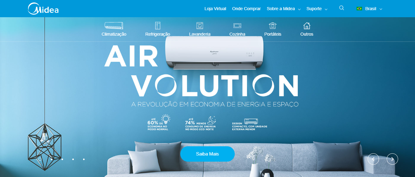 Além do layout, o site tem um novo endereço, veja aqui: www.midea.com/br.