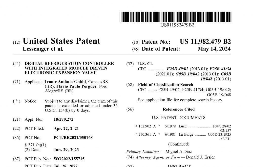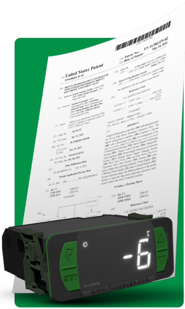VX-1025E no Brasil e Estados Unidos, concedido pelos órgãos regulamentadores INPI (Instituto Nacional de Propriedade Industrial) e USPTO (United States Patent and Trademark Office), respectivamente.  Na prática, isso significa que a tecnologia desenvolvida pela empresa é totalmente nova e, por isso, concede a ela o direito de exclusividade em sua comercialização. “Essa é uma grande conquista para todos nós e um reconhecimento intangível em nível mundial da capacidade de desenvolvimento da indústria brasileira. Foi um intenso trabalho que envolveu o empenho de diversas equipes internas da Full Gauge Controls na criação de um produto revolucionário e inovador, 2 em 1 (termostato mais driver da VEE)”, comenta orgulhoso o diretor Antonio Gobbi. Dada a complexidade e rigor para obtenção de uma patente de invenção, ela é considerada o tipo de proteção mais desafiadora entre todas as possíveis dentro da propriedade intelectual.